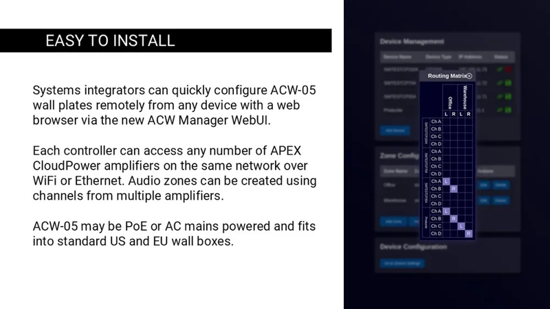 Systems integrators can quickly configure ACW-05 wall plates remotely from any device with a web browser via the new ACW Manager WebUI.