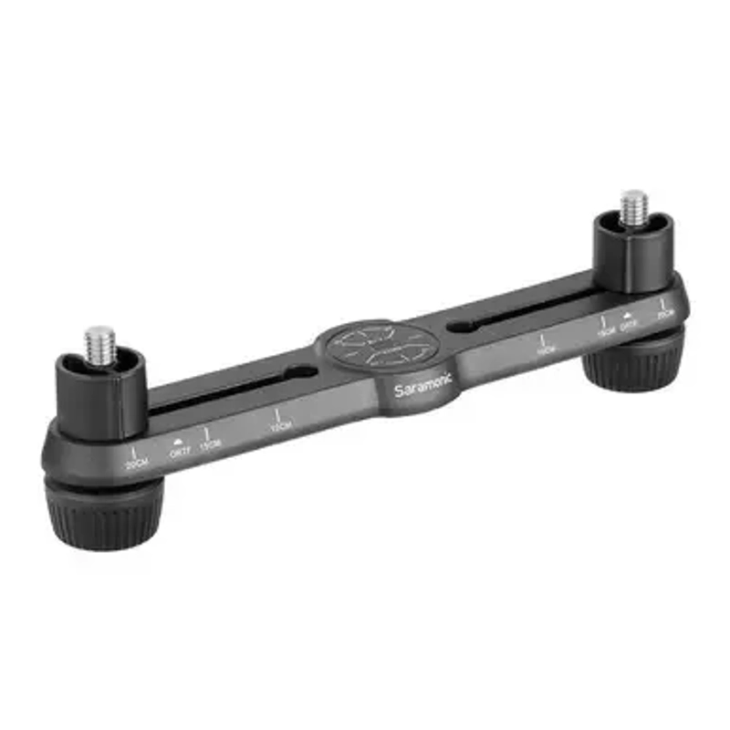 The Saramonic SR-MSM500 is a full-featured stereo bar that enables you to mount 2 microphones up to 7.9” (20 cm) apart and provides clearly printed markers for distances and angles, as well as ORTF and X-Y positioning on both the front and back of the unit. Included spacers allow you to easily stack microphones at varying heights to execute different stereo techniques. This is an indispensable tool for creating accurate and dramatic recordings of live performances, choirs, ensembles, orchestras, acoustic instruments and more. It’s also essential for capturing environmental stereo soundscapes, ambiance, and sound effects for video and film production.