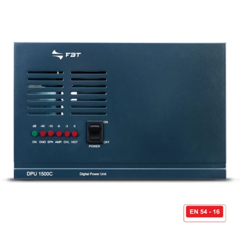Careful design and a choice of reliable high-tech components led to the creation of this range of extremely compact Class D amplifiers, capable of functioning even in the toughest conditions and with a minimum energy consumption. They include a diagnostics board which permits easy and rapid test of the correct unit operation and the check of the loudspeaker's line integrity. The double output circuit with a separate control (A + B) allows realisations of redundant line plants. In case of a short circuit on one of the two output lines, the damaged line will automatically be disconnected to allow the regular working of the other one. The CHA 1004 power card-cage enables amplifier units to be installed in a standard 19" rack. On each cage, can be installed up to 4 amplifiers with  DPU 1125C and/or DPU 1250C or up to 2 amplifiers with DPU 1500C. The DPU amplifiers have been designed to be used with the VAIE 2250 system; they can allow to develop high power zones when they are connected to the controller VAC 2006 through a shielded cable CAT5 SFTP.  A maximum of 16 DPU units can be connected to each of the six VAC 2006 output lines (zones); a backup amplifier for each group can be set. The independent power supply of each amplifier makes this system really reliable and fully in compliance with safety standards.
