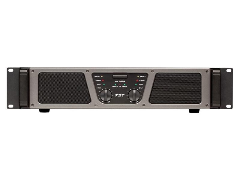 Tour tough built, sleek design, impressive specs, excellent cost per watt performance, efficient under any application. With these credentials, FBT proudly presents the new AX series of power amplifiers, the perfect power mates for sound reinforcement speaker systems. The AX series consists in four 2HU rack mount models, from 800 to 3000 watts, all designed with sophisticated power amp circuits for improved quality, stability and reliability, all equipped with Stereo-Parallel-Bridge operation mode, dB sensitivity switch (26-29-32dB), limiter, ground lift, XLR/Jack inputs (plus extra RCA input on AX 800), Speakon/Binding posts outputs.