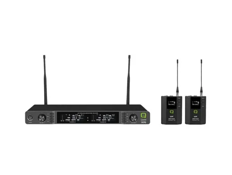 The QWM 1970 lineup offers versatile options to suit various needs. The QWM 1970 HH features a dual-channel system equipped with two dynamic handheld transmitters, perfect for scenarios requiring multiple vocalists or presenters. On the other hand, the QWM 1970 HH BP presents a dual-channel system comprising one dynamic handheld transmitter and one beltpack transmitter with a TA-4 connector and the newest addition to the range, the QWM 1970 BP now features a system with dual beltpacks straight out of the box. This configuration is ideal for setups requiring both handheld and lavalier microphone options, providing flexibility for performers or speakers to move freely while maintaining premium audio quality. Whether you opt for the dual handheld, handheld-beltpack combo, or the dual beltpack system, the QWM 1970 series ensures unmatched performance and reliability, making it the ultimate choice for professional audio applications.