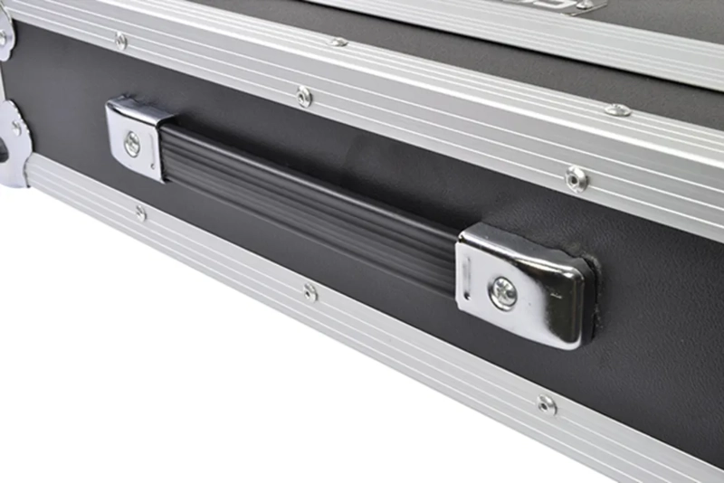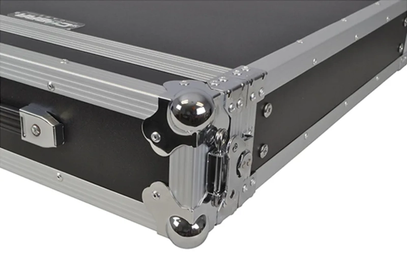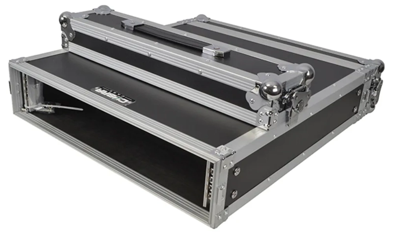 Tough Cobra 2U flight case made from laminated ply with full aluminium trim. Butterfly catches are fitted on all lids. Both front and back covers are removable and rack mounting strips are ready fitted and mounted front and back. Nominal equipment depth is 520mm, but front and back panel controls and connectors can protrude into the lids, equipment can be 570mm in overall depth.