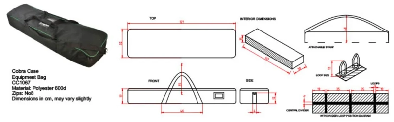A protective speaker stand bag with 10mm padding and strong fabric to help protect your equipment in transit or storage. Unsightly dents and scratches are common place for busy tourers, but the Cobra Case speaker stand bag will help eliminate such damage. This bag holds two stands, with a convenient divider down the centre to prevent the stands touching each other, while the internal straps help secure your equipment. For larger equipment you can remove this internal divider, creating a single space. The bag offers a good degree of protection with 10mm padding and two carry options (handle or shoulder strap) with a label holder for convenience. Although designed as a speaker stand bag, this bag will take a wide range of other equipment.