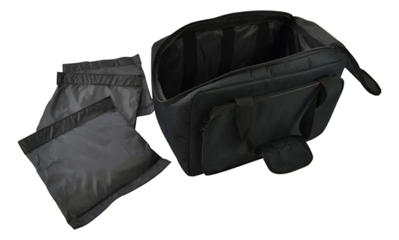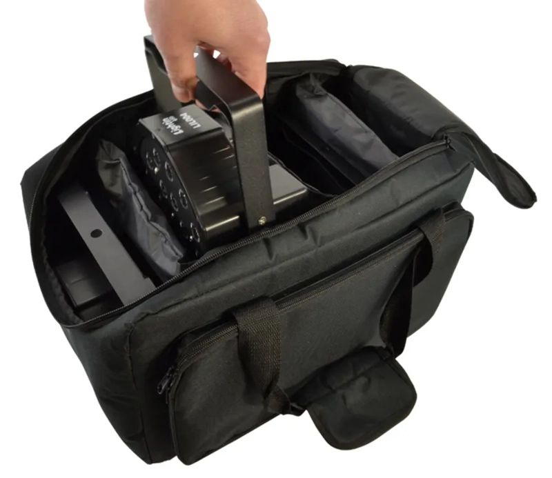 A strong Padded bag suitable for the slim style LED pars and any similar fittings. The fittings are protected from each other by removable, internal dividers and there is space in the bag for interconnecting cables. The internal dividers can be removed to make one large compartment or a number of dividers can be used to make varying size compartments.