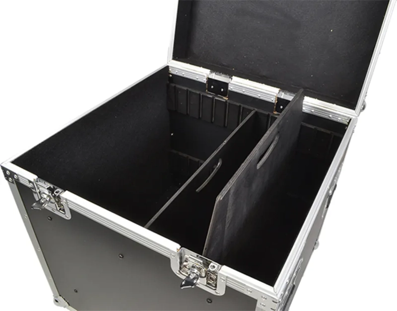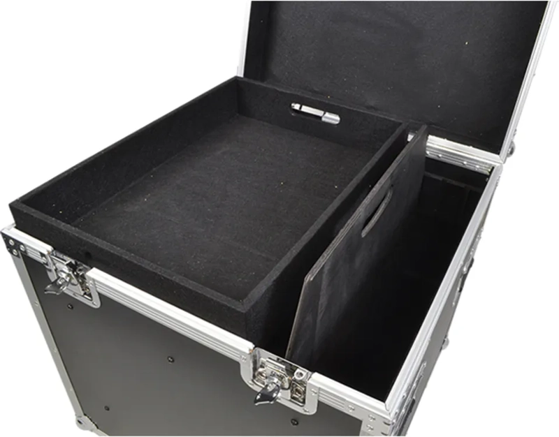 Versatile and rugged universal flight case trunk built with 9mm plywood and covered in a scratch-resistant laminate. There are internal guides for separators with 2 separators included.