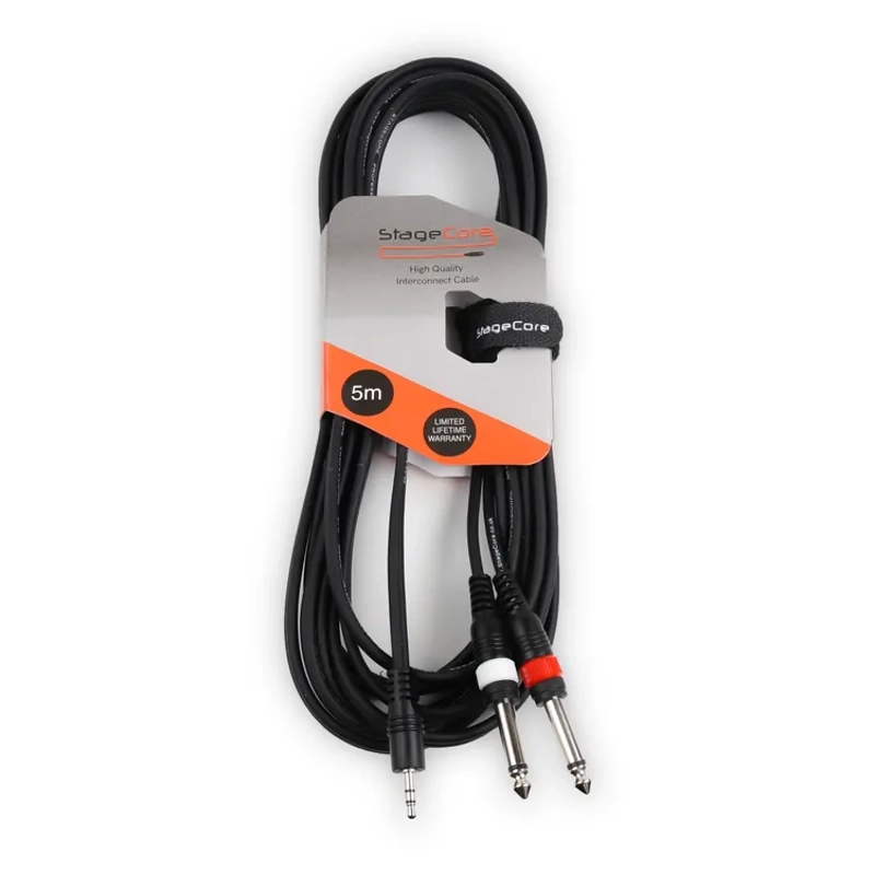 Product Description 1 x 3.5mm Stereo Moulded Jack Plug - 2 x 6.3mm Jack Plugs, Professional Audio Signal Cable - Includes Hook & Loop Tie