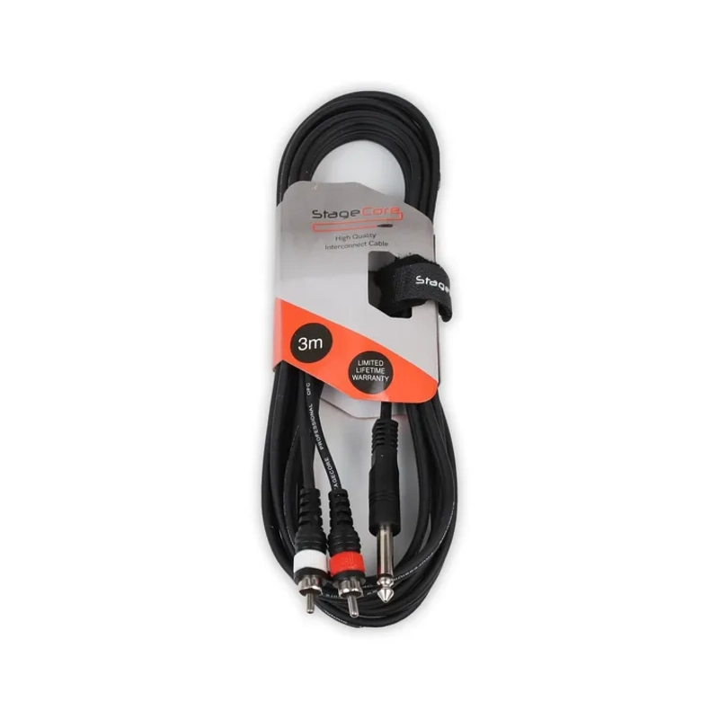 Product Description 1 x 6.3mm Mono Moulded Jack Plug - 2 x RCA Moulded Plugs, Professional Audio Signal Cable - Includes Hook & Loop Tie