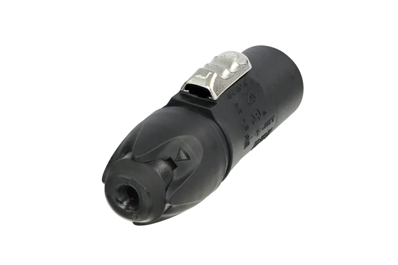 Disassembled locking male cable connector, screw terminals. The powerCON TRUE1 TOP is a locking 16 A true mains connector for outdoor applications. It replaces appliance couplers wherever a very rugged solution in combination with a locking device is needed in order to guarantee a safe power connection. The powerCON TRUE1 TOP is a connector with breaking capacity (CBC), i.e. it can be connected or disconnected under load or live. Disassembled box of 50