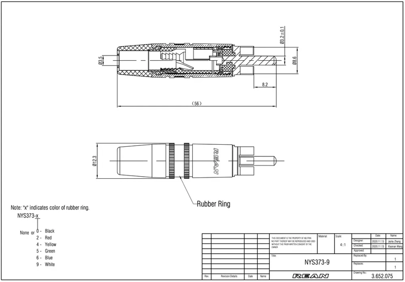 Phono plug, black housing, gold plated contacts, rubber anti-kink boot, chuck type strain relief, cable O.D. 3.5 - 6.1 mm