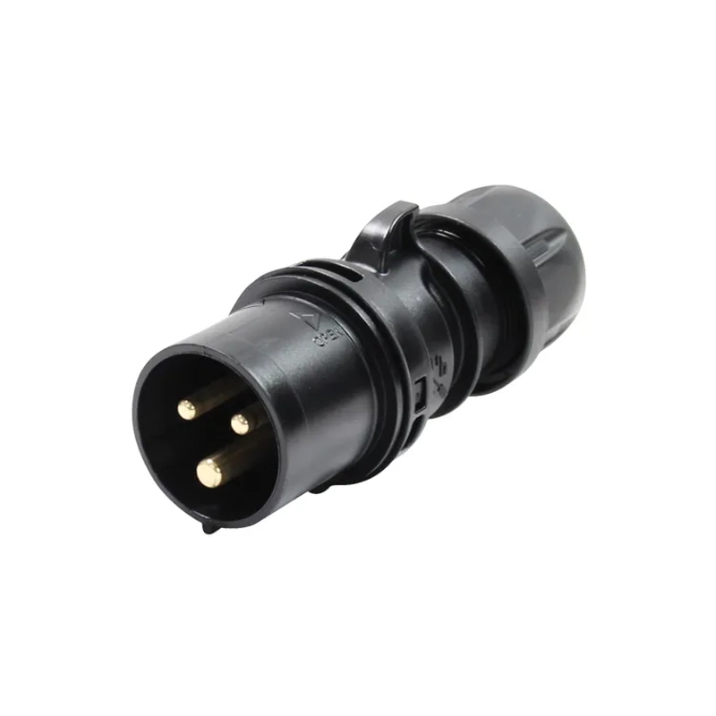 16A IP44 rated CEE-type cable plug suitable for power connections in the event and rental industry. All black body suitable for theatrical use where blue bodied products may be unsightly.