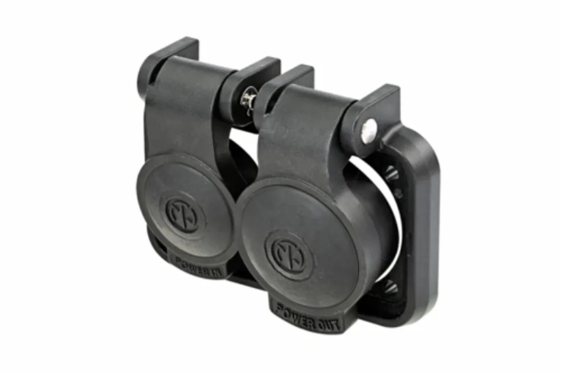 The spring-loaded sealing self-closing cap NSSC-3 for powerCON receptacles shuts automatically after unplugging the cable connector and seals the chassis connectors against dust and water to IP65.