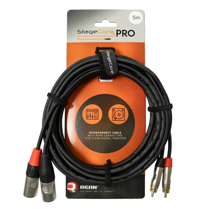 The StageCore PRO 2× XLR to 2× RCA Interconnect Cable is built for audio professionals, musicians, and home studio users who need a dependable, high-quality connection between balanced and unbalanced audio equipment. Each cable is fitted with genuine REAN connectors — a trusted brand under the Neutrik Group, renowned for precision engineering and long-lasting reliability — featuring two male XLR connectors on one end and two RCA/Phono plugs on the other. These professional-grade connectors ensure secure, noise-free signal transfer and consistent performance in any environment. The cable itself is constructed with low-capacitance conductors and full-coverage shielding to preserve audio clarity while minimising hum, interference, and signal loss. A flexible outer jacket and reinforced strain reliefs provide exceptional durability, and the included hook-and-loop tie keeps your cables neatly organised.