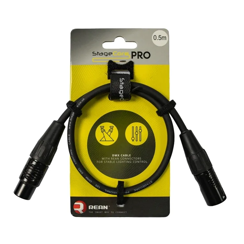 StageCore PRODMX3LU05 REAN 3 Pin XLR Male - 3 Pin XLR Female, 120 ohm DMX Cable, LU0.5