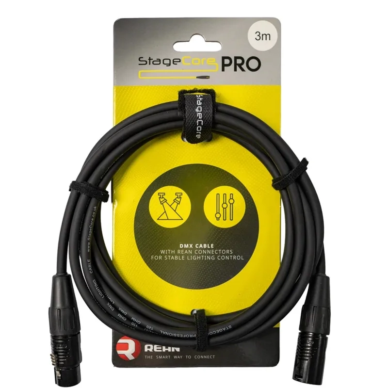 StageCore PRODMX5LU3 REAN 5 Pin XLR Male - 5 Pin XLR Female, 120 ohm DMX Cable, LU3