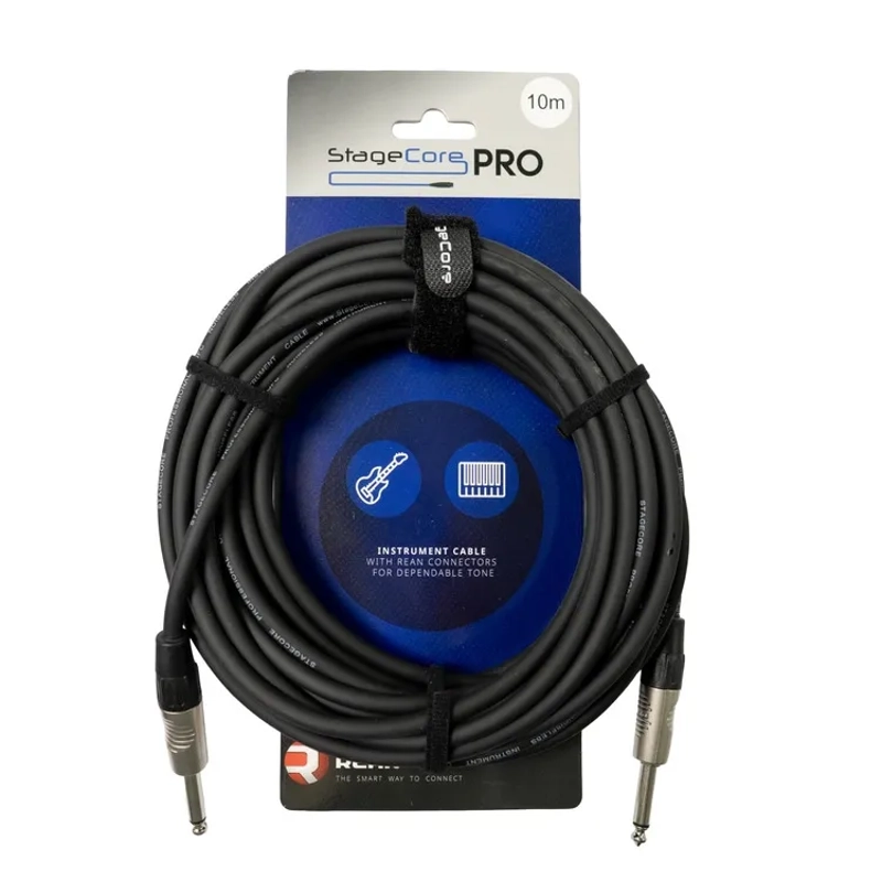 The StageCore PRO Jack-to-Jack Instrument Cable is engineered for musicians who demand reliability, clarity, and durability from their gear. Each cable is fitted with genuine REAN ¼ (6.35 mm) mono jack plugs, a brand under the Neutrik Group renowned for precision engineering and professional performance. These connectors provide a secure, noise-free connection that stands up to the demands of stage and studio use alike. The cable itself features a large-diameter, low-capacitance conductor with high-coverage shielding, designed to preserve your instrument’s natural tone and eliminate unwanted hum or interference. Its rugged, flexible jacket and reinforced strain relief at both ends ensure long-term resilience, while the included hook-and-loop tie keeps your setup tidy and organised. Whether you’re plugging a guitar, bass, or keyboard into an amplifier, running signal through a pedalboard, or recording directly into an interface, the StageCore PRO delivers a clean, consistent signal every time. Combining professional-grade REAN connectors with premium cable construction, it offers the tonal integrity and dependability of high-end instrument leads at a far more accessible price — making it a smart, stage-ready choice for any serious musician.
