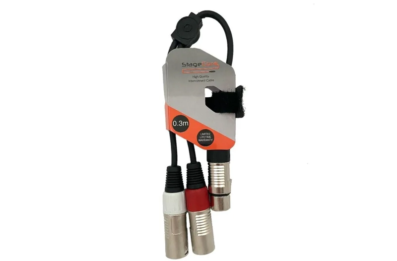 Product Description 1x Female XLR, 2x Male XLR Professional Audio Signal Cable - Includes Hook & Loop Tie 0.3m Length
