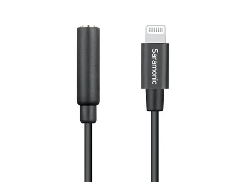 The Saramonic SR-C2002 is a short adapter cable with an Apple Lightning connector on one end and an 1/8“ (3.5mm) TRRS female jack on the other. It lets you easily connect TRRS microphones, wireless receivers, mixers and other audio gear directly to the Lightning port on an Apple iPhone or iPad. Plug-in power is provided, which makes it compatible with a large number of microphones. The SR-C2002 can also add a fully functional headphone jack to an Apple device that lacks one.