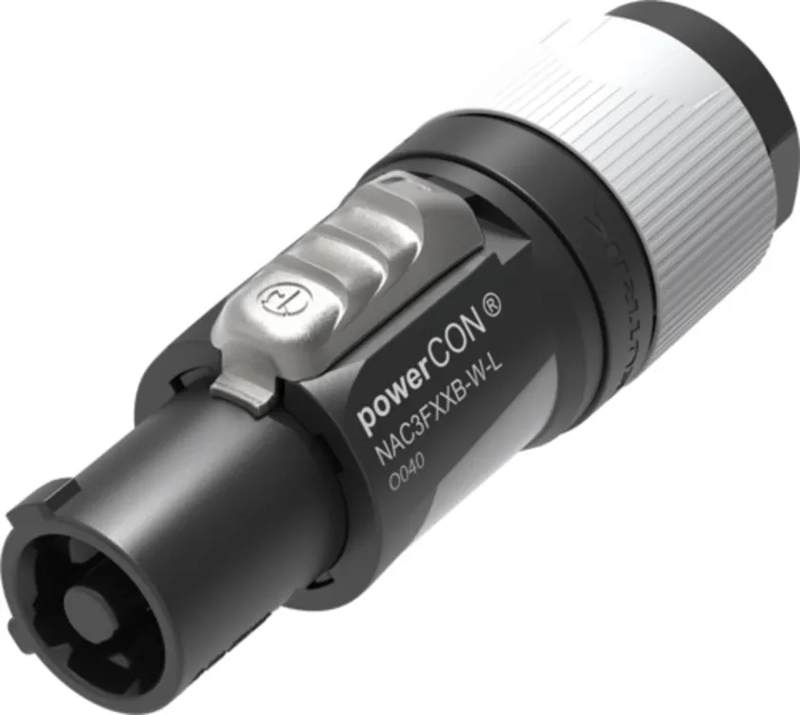The powerCON FXXA/FXXB is a single phase (3 conductor) lockable power connector with Circuit Breaking Capability when mated with powerCON XX Series receptacles.