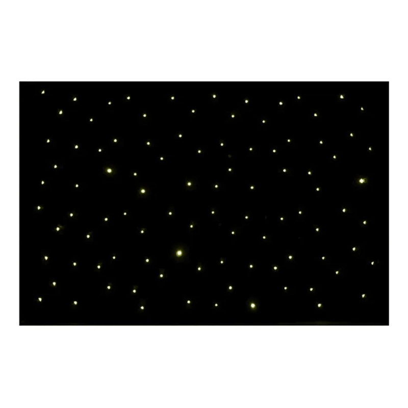 The Ultimax 6m x 3m Cool White LED Starcloth offers a refined and professional lighting solution for events, performances, and presentations. Constructed from black fire-retardant Molton fabric, it features 144 bright white LEDs arranged for maximum visual impact across its surface. The included DMX controller provides smooth control over lighting patterns and intensity, making it easy to create a captivating starfield effect. With a modest 65 W power consumption and durable build with hook and loop and eyelets for mounting, this starcloth is a dependable choice for event professionals seeking clean, elegant illumination.