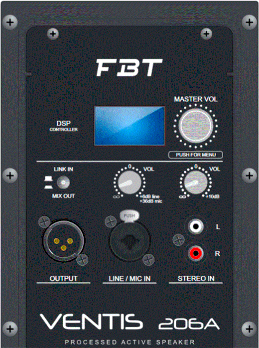 - Control Panel features balanced XLR/Jack input, XLR LINK OUT, 2 x Volume, RCA Stereo input, DSP display with rotative encoder and push