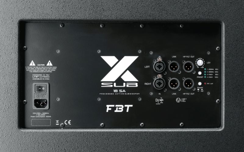 Designed as the perfect partner for the X-LITE and X-PRO series, FBT introduces the new X-SUB 18SA powered subwoofer. Loaded with a single 18” heavy duty woofer, the X-SUB 18SA is controlled by a 1200W Class D amplifier with DSP at 4 presets allowing perfect tailoring of the extended low frequency to the mid-high. The rugged plywood enclosure is built to withstand touring conditions, yet crafted with Italian style to suit the most elegant fixed installations. Finally, the M20 thread allows for pole mounting on a 3-way system design.