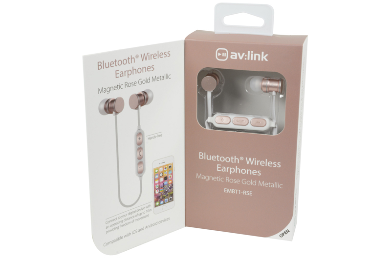 AV:Link Bluetooth Headphones Magnetic Rose Gold EMBT1-RSE 100.541 Wireless Buds