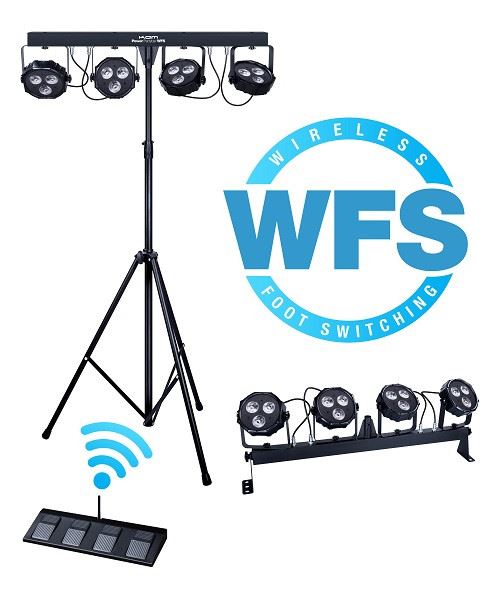 - Powerful all-in-one DMX LED lighting system with wireless footswitch control
