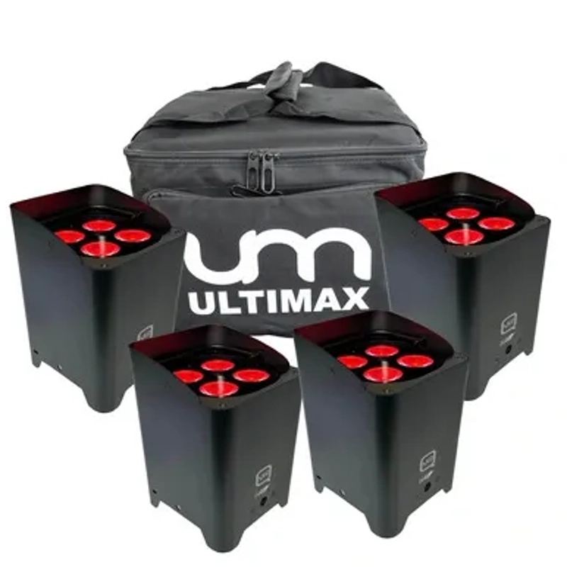 The FLUX H4IP+ Uplights with Ultimax Carry Bag bundle is the quickest way to add professional, cable-free ambience to events, weddings and installs. Each Q4IP+ fixture packs 4 × 12 W RGBWAUV LEDs for smooth colour mixing, with a tight 25° beam and wider 49° field for crisp uplighting without spill. Power is courtesy of an internal lithium-ion battery that delivers up to 12 hours on single-colour operation and recharges rapidly between gigs. Control is effortless via built-in W-DMX for wireless shows, with 3-pin DMX available when you want to run a cable. The housing is weather-resistant with IP65 on the top panel and IP54 underneath, so you can confidently deploy indoors or outdoors.
