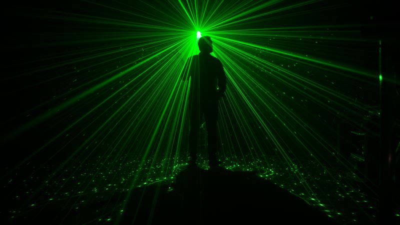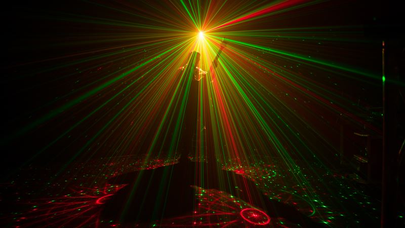 - Red and green laser produces thousands of razor sharp beams that cover a large area