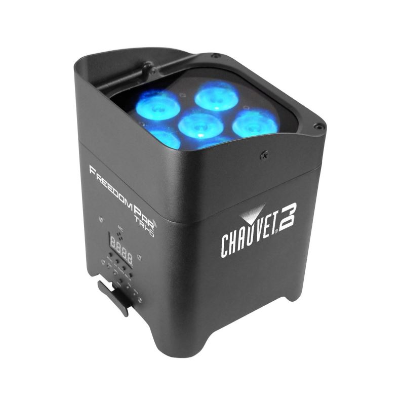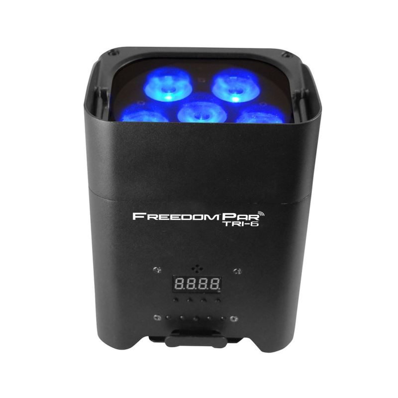 Freedom Par Tri-6 is powerful, bright, and truly 100% wireless with a rechargeable battery and a built-in D-Fi transceiver. Freedom Par Tri-6 has 18 watts of RGB color mixing and can be operated with the control panel, the included CHAUVET® DJ IRC-6 remote, or from any mobile phone or tablet running the FlareCON mobile app. Freedom Par Tri-6 fits perfectly inside TRUSST® and all other 12” box truss, and travels safely and stylishly in the CHAUVET® DJ CHS-FR4 VIP Gear Bag or using the Freedom Charge 9 road case.