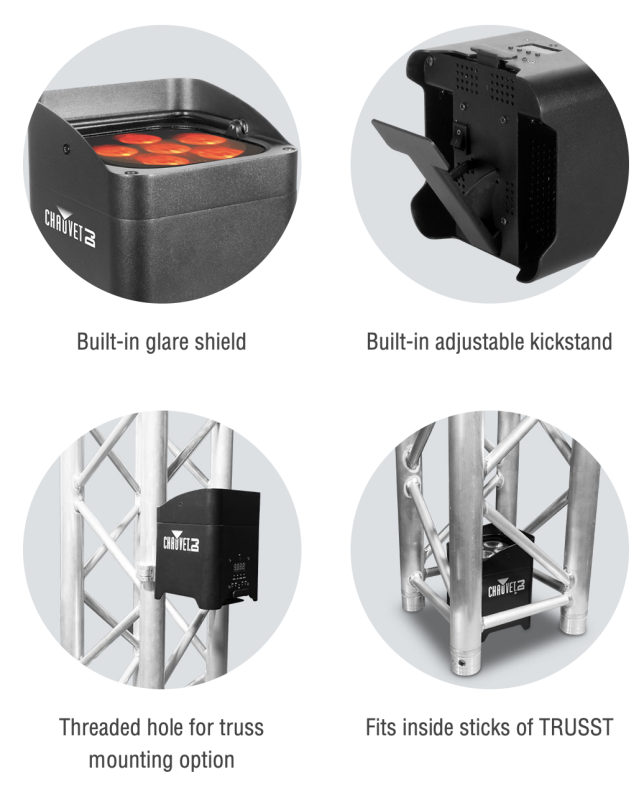 - Safely store and transport your fixtures from gig to gig in the CHS-FR4 carry bag
