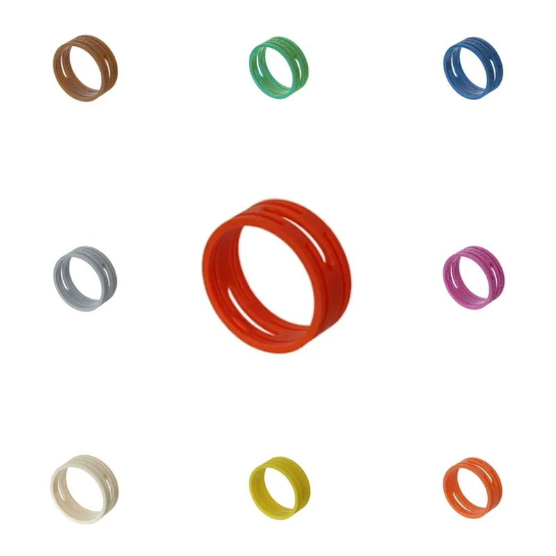 Coloured coding rings for "XX" Series of Neutrik connectors. These colour coding rings are available to fit over the shell at the base of the gland, and are 6mm wide. They are suitable for use with standard 6mm wide labelling machine tapes. They can be fitted whilst new connectors are being assembled, but can also be retrofitted to existing connectors by unscrewing the gland, sliding the shell off the connector insert, fitting the ring over the back of the shell, then reassembling. The wire connection to the insert and contacts remains intact during the process.
