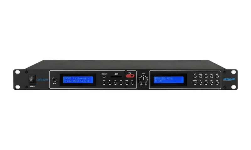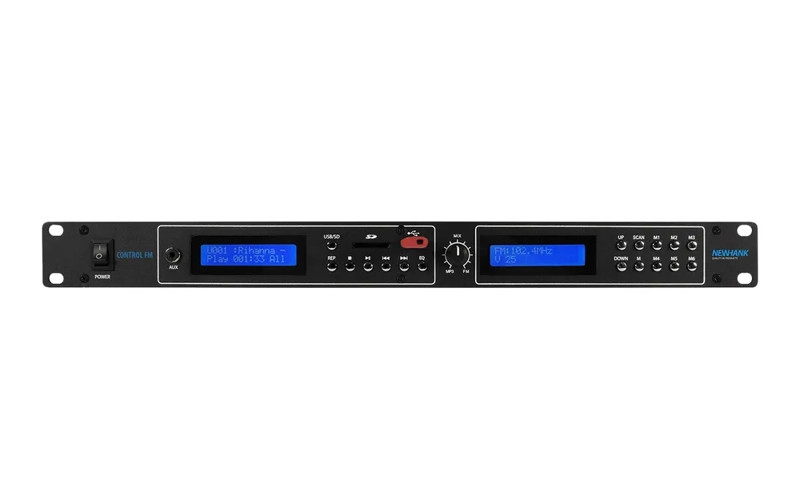 The NewHank CONTROL FM is a versatile and compact 1U audio source unit, designed specifically for commercial background music systems. Combining an MP3 player with a built-in FM tuner, it provides a simple yet highly effective multi-source solution for bars, restaurants, retail spaces, and public environments.