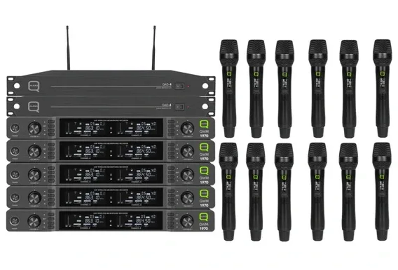 The Q-Audio QWM1970HH-12W is a complete twelve-way wireless package designed for venues and teams that need reliable, easy-to-use radio mics across multiple performers. At its heart are six dual true diversity receivers paired with twelve Handheld transmitters.