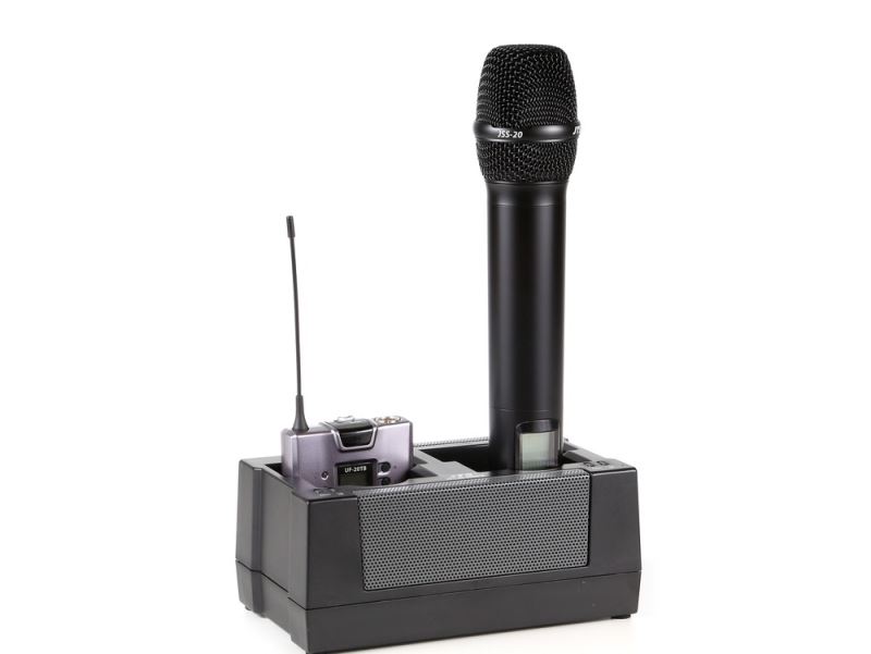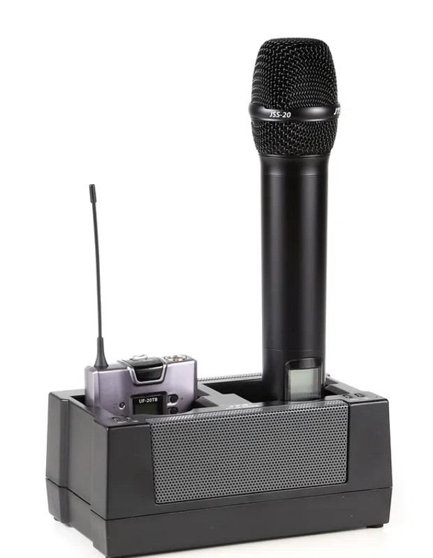 The JTS CH-2 is our 2 way intelligent charging doc. This provides a convenient place to store the microphone whilst silently charging the AA batteries. Auto off prevents overcharging. It is able to charge either handhelds or body packs , max 2 at a time. Charge time 3 Hours