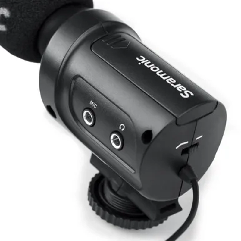 The Saramonic SR-M3 is an amazingly affordable on-camera shotgun microphone that delivers broadcast-quality sound to DSLRs, mirrorless cameras, video cameras and audio recorders and provides a versatile array of useful features. The SR-M3 features a headphone output, so you can always hear your sound — even when your camera lacks a headphone jack. An additional 1.8” (3.5 mm) microphone input enables you to plug in a second microphone. If your camera only has a single mic input, the SR-M3 enables you to use two. You can connect a clip-on lavalier mic, like the Saramonic SR-XLM1, or an additional shotgun, like the Saramonic SR-PMIC1. The SR-M3 also has a +10dB boost switch that allows you to turn down your camera’s noisy preamp in order to capture much cleaner sounding audio as well as letting you pick up subjects from further away.