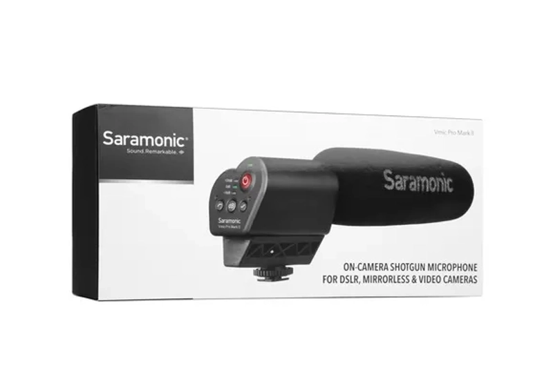 The Saramonic Vmic Pro Mark II is a supercardioid on-camera condenser shotgun microphone that provides broadcast-quality audio to DSLR, Mirrorless and Video Cameras. The Vmic Pro Mark: 11 features an input level control (-1 OdB, OdB, +20dB), a high-pass filter (150 Hz) and a high-frequency boost ( +6dB) to increase intelligibility of dialogue. The detachable 3.5mm cable connects the Vmic Pro Marie II to your camera’s audio input and the stereo headphone output allows you to monitor the incoming audio. The specially designed shock mount system provides isolation from vibration and mechanical noise.