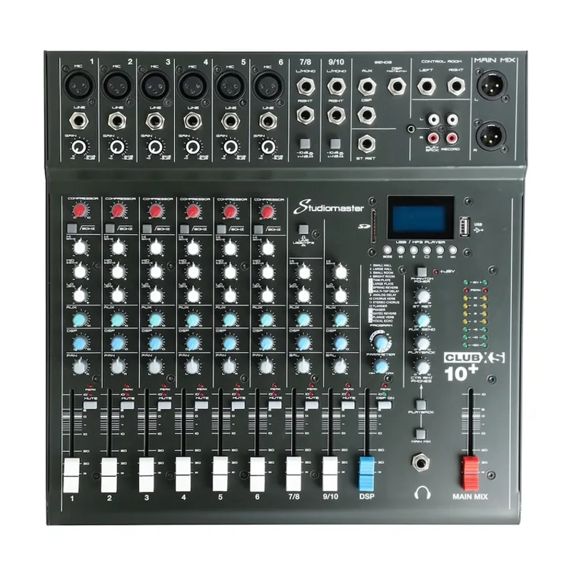 The Club XS+ models incorporate all of the great features of the standard Club range, now with the inclusion of a DSP On/Off foot switch socket and an aesthetic overhaul, redesigned control knobs and finished in Studiomaster digital black.