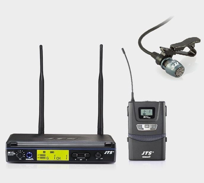 Here we have a UHF radio microphone system from JTS with a IN-264TB lapel microphone transmitter and IN-164R receiver ready to go. Features long operating range and the World’s First Remote Control RF setting function that allows automatic remote control frequency settings of the Transmitter from the Receiver.