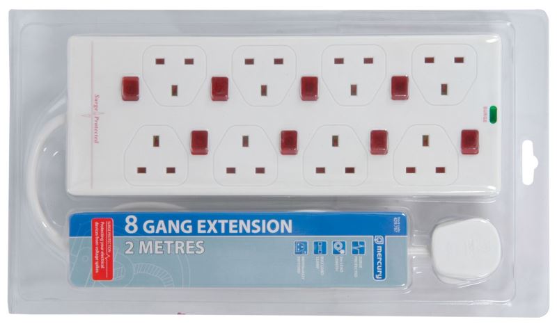 8 Gang Extension Lead with Surge Protection and 8 Neon Switches