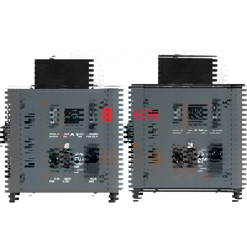 The Fog Fury Jett may be use vertically or horizontally. The reservoir tank may be mounted in the front or rear of the unit so the machine may be pointed up or down. The ADJ FFJWR wireless remote comes included with the Fog Fury Jett.