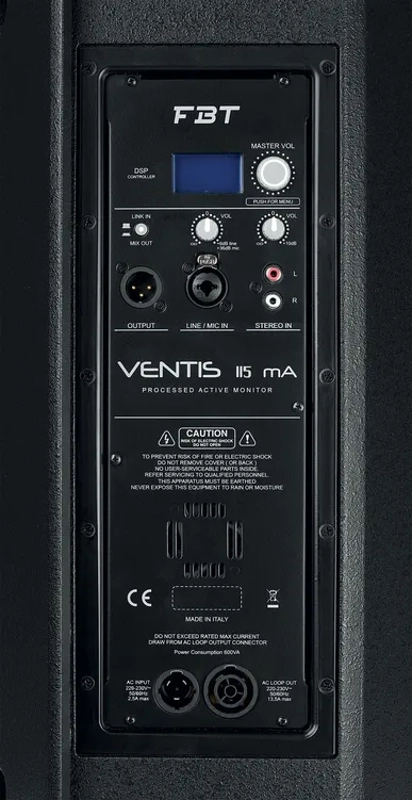 The 112MA and 115MA bring floor monitoring to VENTIS. Rated at 700W + 200W, the bi-amplified 112MA delivers 132dB SPL in a bass reflex design, using a 320mm (12) coaxial custom woofer with a 64mm (2.5) voice coil, 25mm (1) B&C throat and 44mm (1.7) voice coil.