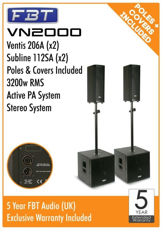 FBT VN2000 Active Stereo PA System Package 3200w RMS Ventis 206A Subline 112A