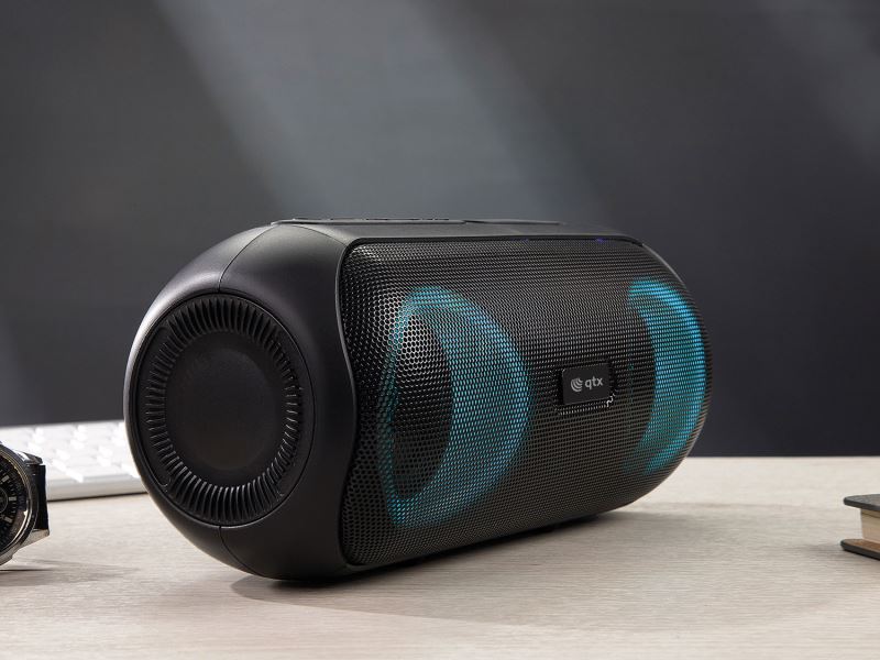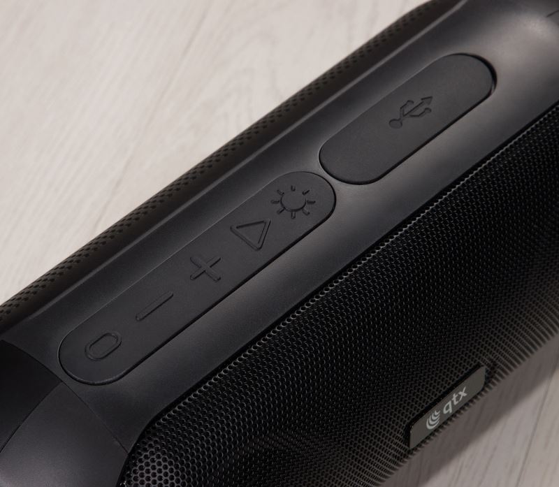 Take the party with you, with cutting edge features, LED light show and powerful sound. Offering the latest Bluetooth connectivity for ultimate device compatibility, the QTX PartyPod can go anywhere due to its splashproof design, handy carry strap and up to 6 hours playback from a single charge. Inbuilt FM radio, USB and TF/Micro SD slots add to its versatility, enabling direct playback of MP3 files from compatible media. Connect to a 2nd unit using the TWS function to enhance your sound experience to true wireless stereo.