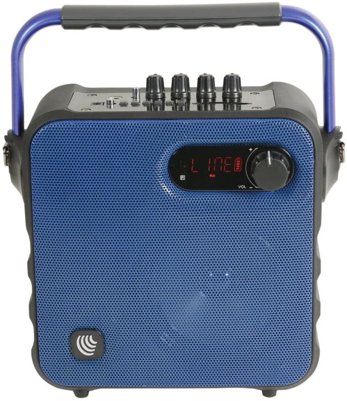 - Media player with inbuilt FM, USB, TF (Micro SD), mic, and aux line inputs
