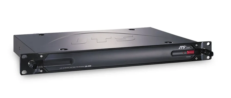 The JTS UA-960 is a full range UHF antenna splitter that routes antenna signals from a pair of antenna to several receivers in a multi-channel system.